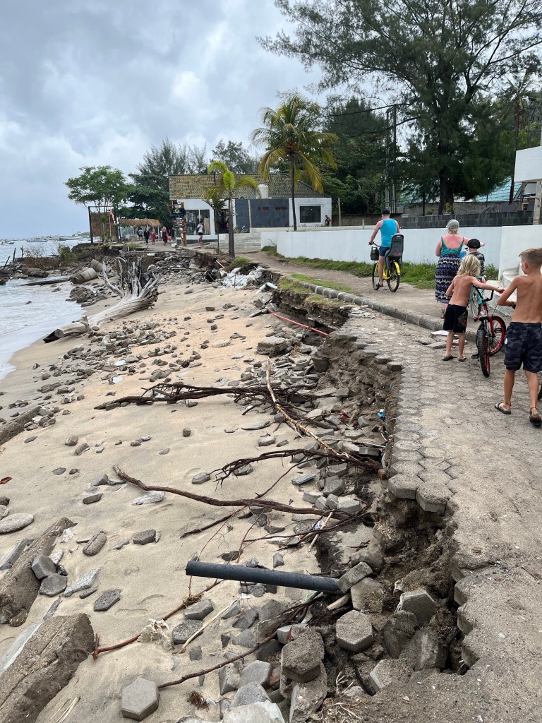 On our first day here, we walked around the island, stopping for a delicious lunch and then a drink and a good chat with an English expat working at the bar she runs with her boyfriend. The shoreline is eroding in parts, in other areas the boardwalk has fallen into the ocean due to the earthquake, many hotels and bungalows are falling apart as a result of the earthquake and subsequent abandonment due to no tourism over the pandemic. There is garbage all over the island though I have heard about volunteers helping with some of the cleanup so will need to find some more information on that.