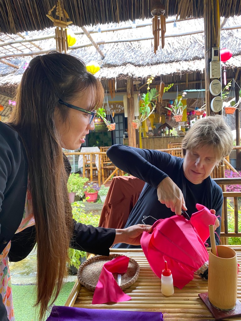 When we returned, they were all set to help us make a Hoi An style lantern . Unfortunately we were not able take it with us, but left it for the family.