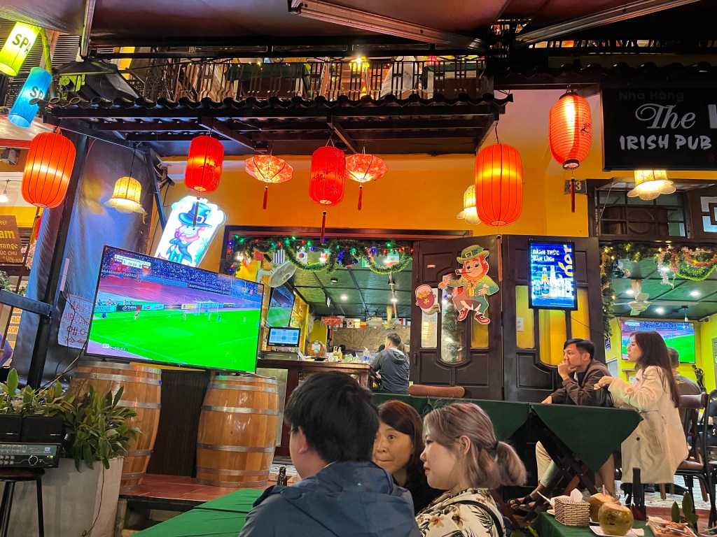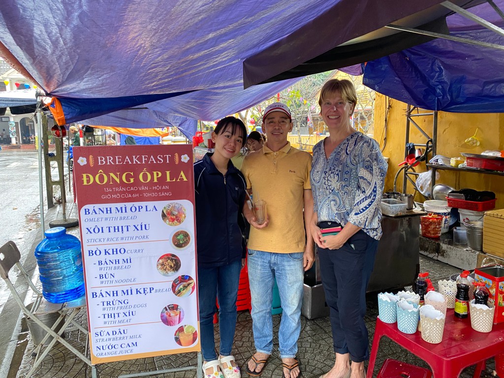 A couple more visits to Kimmy Tailor, 1 more visit to the same spa and coffee shop, an amazing cooking class, several walks in the rain, watching Vietnam and Thailand face off in the final football match of some big competition from an Irish Pub on the waterfront, the discovery of a great family-run roadside breakfast place and before we knew it, our Hoi An visit had come to a close.