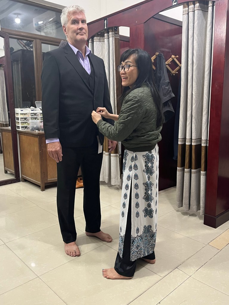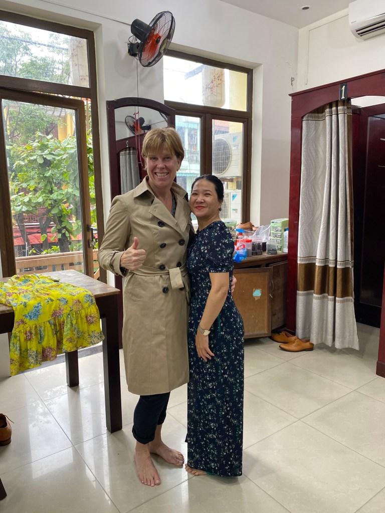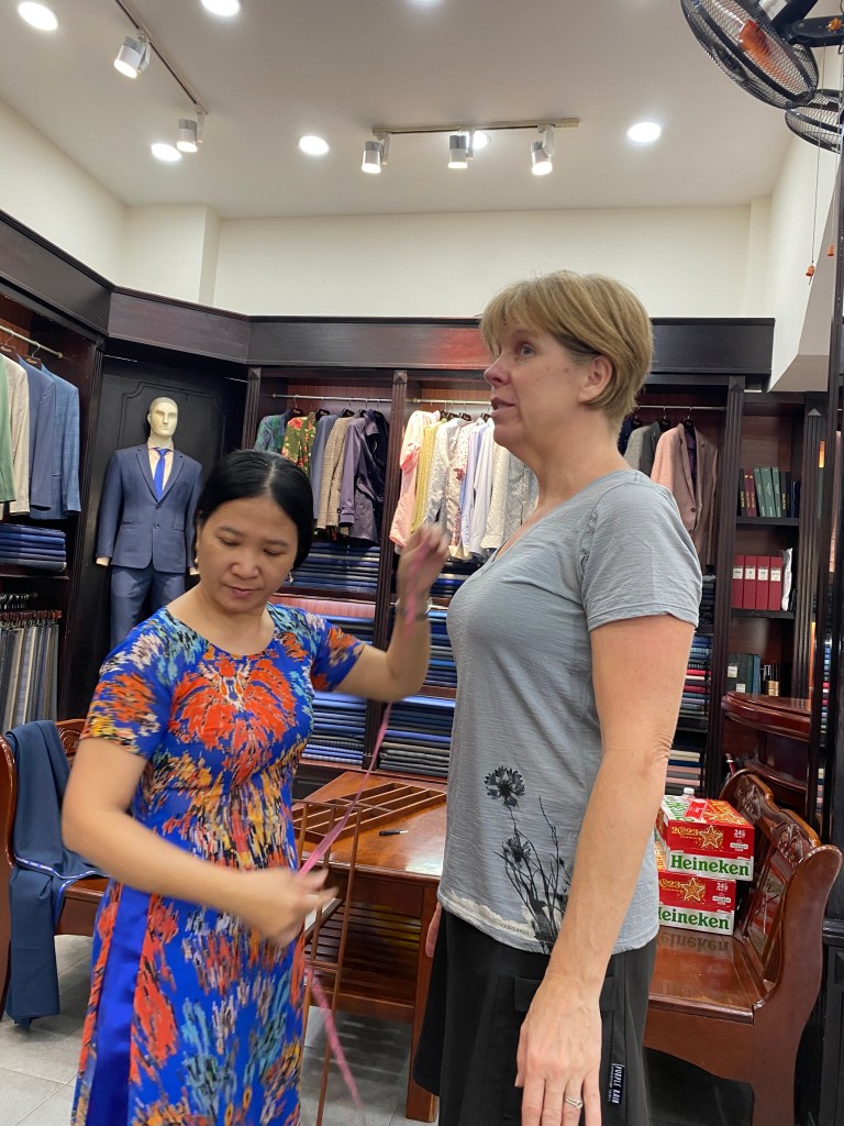 Well, of course they have a handmade bag and shoe store connected to their business and… my sandals had broken in my little tripping incident in Ho Chi Minh so… I was measured for new made-to-fit sandals.