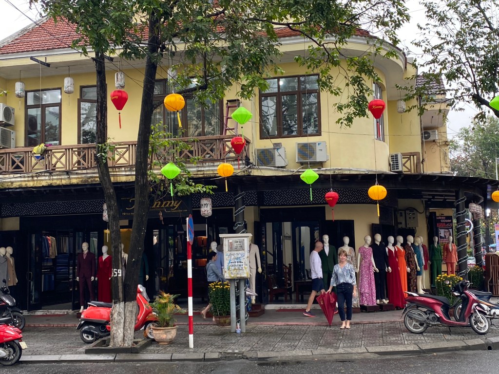 We had heard from several sources that Hoi An was THE place in Asia to get custom clothes made but we weren’t convinced we would join the craze. Soon, however, and to no one’s surprise I’m sure, we had each thought of a few items that would come in handy when we got back home and decided that maybe we should go for it; we are in Hoi An, the weather was crummy and we promised to be present and aware of our surroundings.