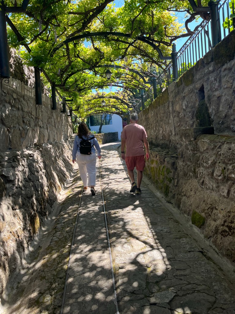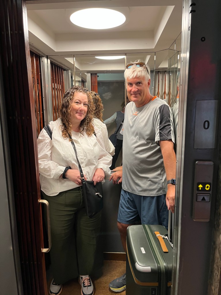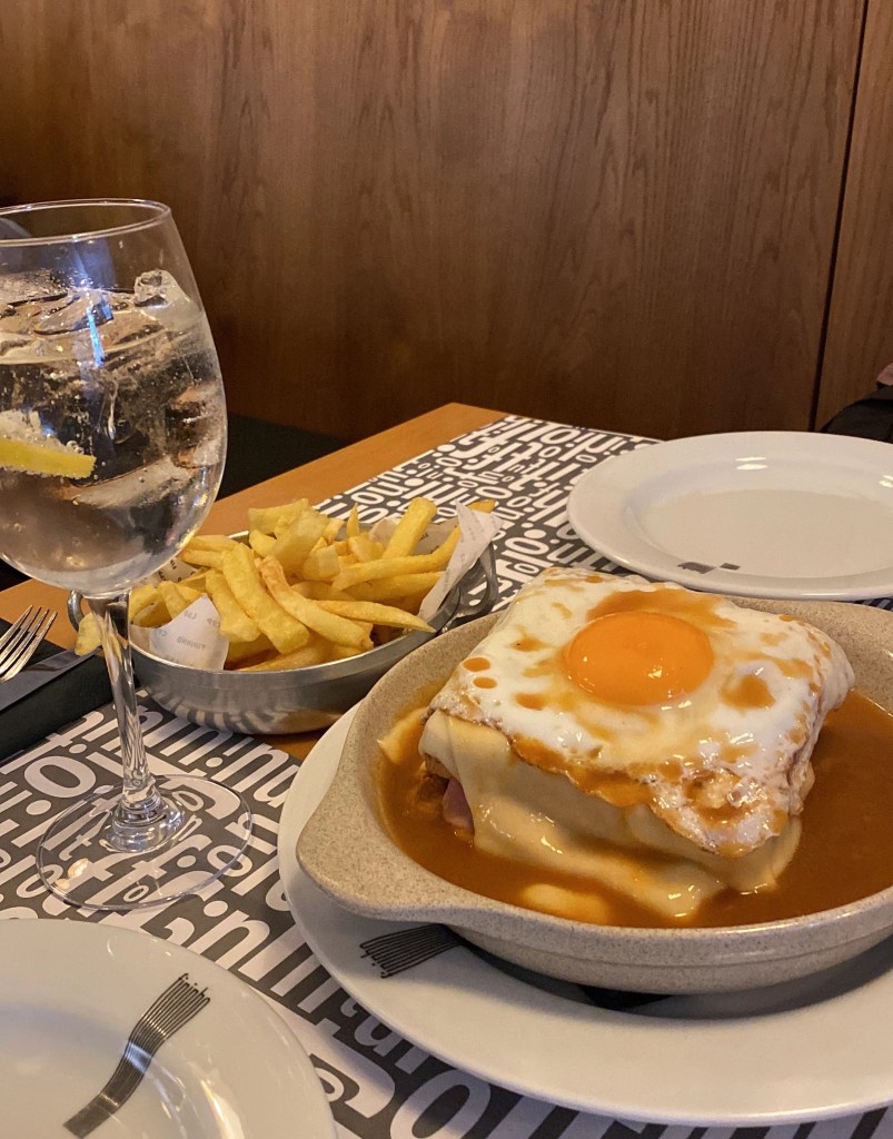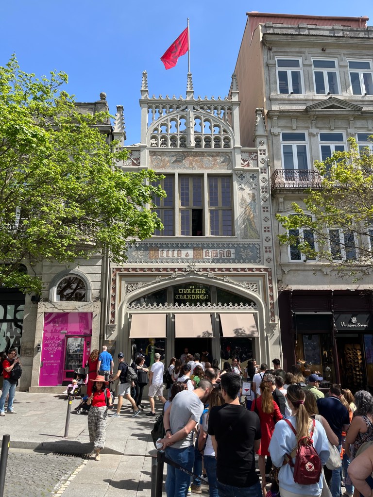 We walked along the portion of the Camino route that we would not be riding the next day.This is THE WAY.In front of Porto University we found the Fountain of the Lions.All the Harry Potter fans lining up to get into the Livrerio Lello.Torre dos ClérigosPraça de LiberdadeSaloud!Apparently a francesinha sandwich must be included in a visit to Porto (definitely NOT vegan friendly)!The iconic Majestic Café. We did not go in for s drink – €6 for a cappuccino!!! 😳 Strolling home after a yummy Tapas dinner on our last night in Porto.Our last ride down the rickety elevator to see Madeleine off, and Paul’s last chance to lug the mega-suitcase 😆 (sorry Madeleine but had to get that one in here)!!