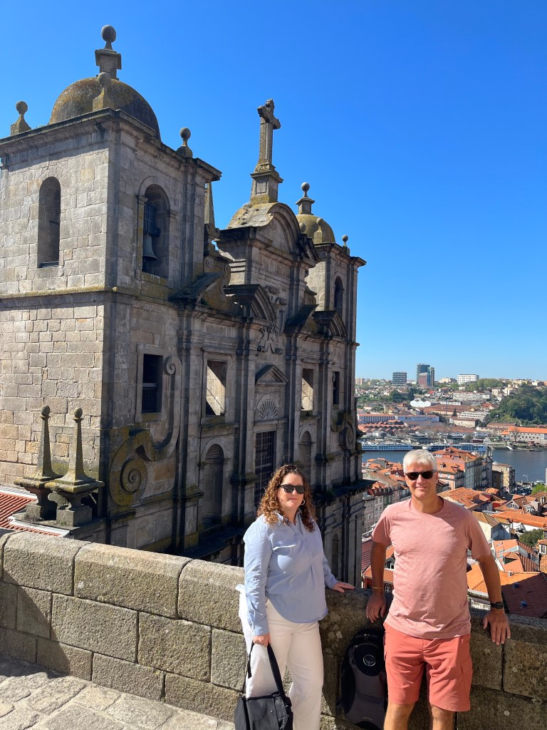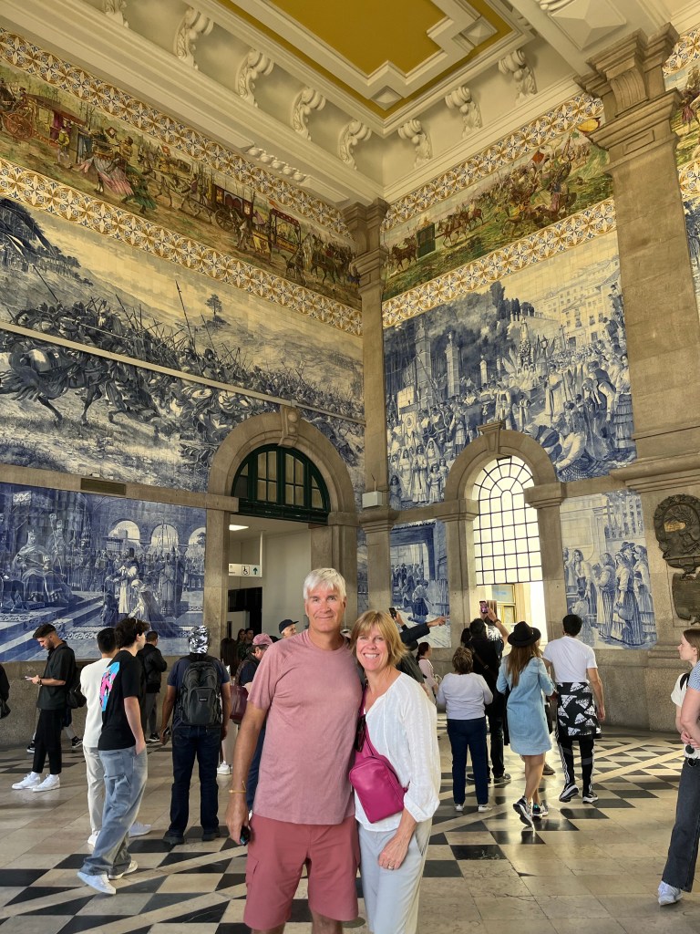The view from our 5th flour apartment was amazing. We were right across from Balhoa Market and could see the colourful buildings along Catalina walking street.Balhao MarketThis church was on the corner of Catalina and Rua de Fernandes Tomás , where our apartment was located.The beautiful São Bento Railway StationAt the Porto CathedralClimbing the stairs to Church of Saint Ildefonso on Good Friday.Of course we had to head over to the Cais de Gaia, on the south bank of the Douro river.Climbing up the hill towards the Port houses in Vila Nova de Gaia. Paul was definitely in his happy place tasting 10-50 year old tawny port at Taylor’s.We went on a wine tour in the beautiful Douro Valley.We met Caragh from Ireland and had a great time tasting Portuguese wine and Port Wine.Après wine tour drinks and walk on the banks of the Douro in Porto