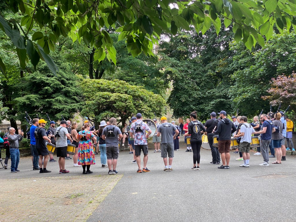 One of the bands practicing in the park