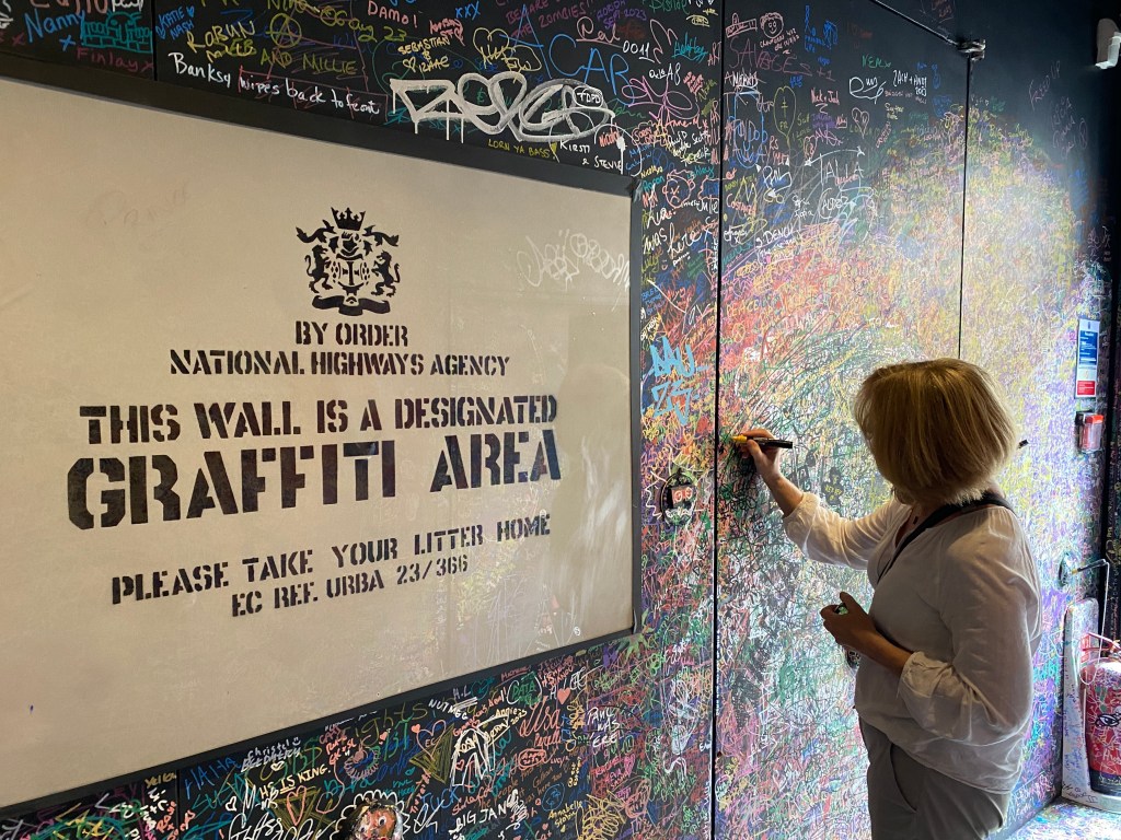 Heather tagging the wall