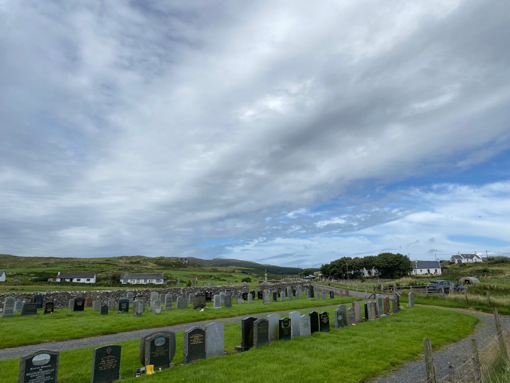 The next morning I headed for Islay. This stop was one that had a different meaning for me, as (according to Ancestry.com and Cam, the McMillan family historian), it’s where my first identifiable ancestor, Donald McMillan, was born in 1784. I’m not big into all the ancestry stuff, but standing there, in the cemetery and looking at where the homes were, was very moving.