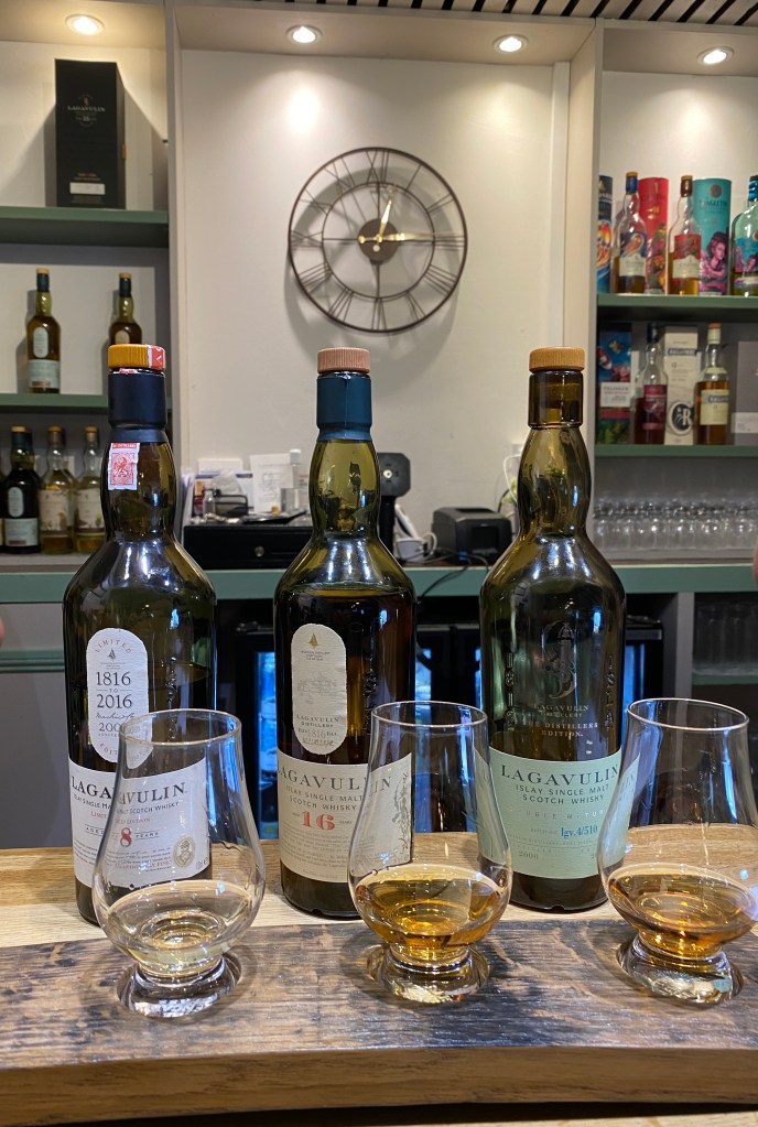 For the remainder of my Islay time I wandered about with a focus on what Islay is most famous for……the whisky! Unfortunately Bowmore was closed to visitors on Sundays and Mondays, but I was able to do the Three Distilleries Trail on Monday, with stops at Laphroaig, Lagavulin and Ardbeg. Definitely a different kind of “hike!”